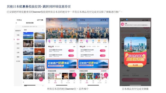場所2. 無憂行アプリの日本目的地ページにある「グローバルクーポン」バナー枠で広告を掲載します。また、日本の商品購入完了時に、ポップアップでクーポンを宣伝します。