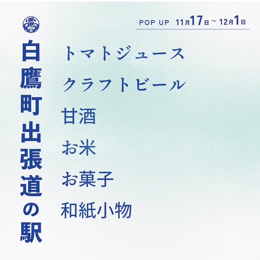 白鷹町のサンファームしらたかさんのお米「雪若丸」や、天童ブルワリーさんのクラフトビール「そよ風ホップ」、やさい畑 i-makeさんのフレッシュなトマトジュースやドライトマトなど、多彩な商品が揃います。また、深山和紙センターさんからは、手作りのポストカードや小物、えびな菓子舗さんからは、「くるみゆべし」や「白鷹つむぎ」など、白鷹町ならではの特産品を楽しめます。