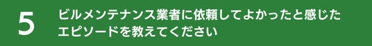 ここまでの調査でビルメンテナンス業者の評価ポイントがわかりましたが、依頼してよかったと感じたエピソードについても伺ってみましょう。