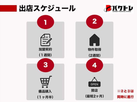 「アクロバットで人生を豊かに」という理念のもと、バクトレを展開しています。バク転を通して、高度な集中力とメンタルを鍛えるだけでなく、自分に自信をつけられる習い事として子供から大人まで幅広い層に通っていただいています。ここ数年間で直営店、一部FCの運営を続けてきたことにより、ノウハウの蓄積、FCを広げるための準備を行ったことで皆様に安心してこのバクトレに加盟していただける環境が整ったと感じております。