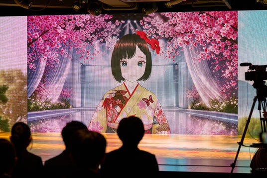 式典では、同社オリジナルのAIアバター「きずなちゃん」が、司会をナビゲートする存在として登場しました。