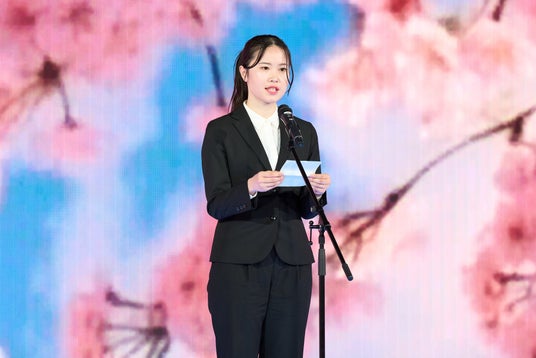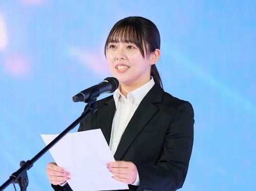 式典後半では、新入社員と家族をつなぐ企画として、株式会社ワールドインテックの新入社員・小松優花さんが両親への感謝の手紙を披露しました。