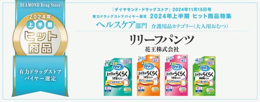 花王株式会社の排泄ケアブランド「リリーフ」の「 上げ下げらくらくパンツ」は、ダイヤモンド・ドラッグストア誌が主催する「有力ドラッグストアバイヤー選定 2024年上半期ヒット商品」に選出されました