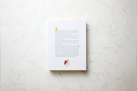 裏面には、サントメ島を舞台に現地の女性たちと日出る国から来た1人の女性パティシエとの、出会いと絆の物語がフランス語で書かれています。