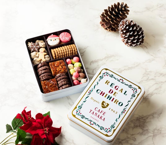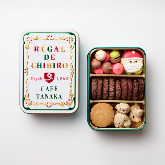 レガル・ド・チヒロ ノエルは、缶のデザインはもちろんふたを開けたその中もクリスマスムードが満載です。まずは定番人気のディアマン・ショコラやサブレココ、そしてフロランタン。さらに北フランスやベルギーでクリスマス時期に食べられる伝統的なクッキー「スペキュロス」、パティシエが1つ1つ手描きしたジンジャーマンのアイシングクッキーや可愛いサンタのマカロンラスクなど、心躍るクッキーたちがぎゅっと詰まっています。ご家族や大切な方々とのクリスマスシーンや、聖夜のティータイムなどにぜひお愉しみください。