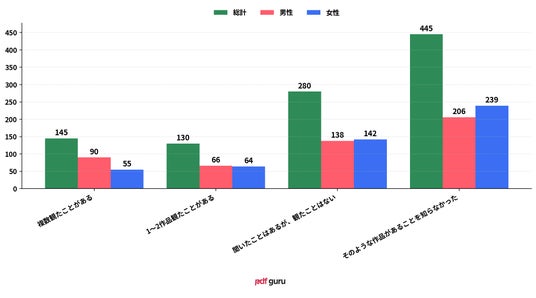 性別による違いとしては、複数の実写化作品を観たと答えた割合は男性の方が高く、一方で「そのような作品があることを知らなかった」と答えた割合は女性の方が高い結果となりました。