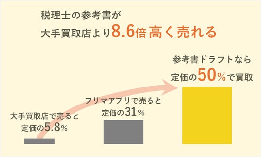 人材ドラフトなら参考書が「8.6倍」高く売れる。大手買取店は定価の5.8%、フリマアプリは31%、人材ドラフトは50%で買取