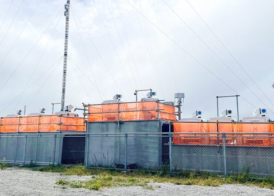 洋上風況観測で使用するスキャニングライダーの試験サイトにおける精度検証の様子