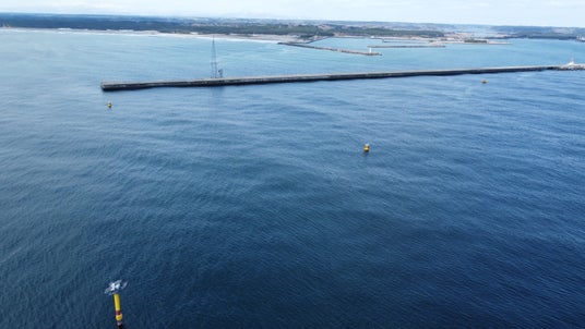 洋上風況観測で使用するフローティングライダーの試験サイトにおける精度検証の様子