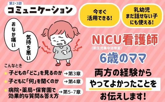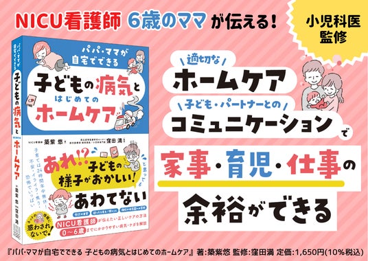 本書では、赤ちゃんや子どもの病気・ケガの正しいホームケアとコミュニケーションを、NICU(新生児集中治療室)看護師がパパ・ママ向けに解説しています。自身も子育て中である著者による「おうちで早く正しいケアをする重要性を伝えたい」「パパ・ママの不安や焦りを和らげて、支えたい」との願いから、本書は誕生しました。