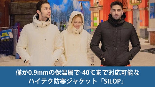 ハイテク防寒ジャケット「Silop」は、宇宙服と同じ断熱材であるエアロゲル複合材料を採用し、優れた保温性・断熱性・防水性・通気性・吸湿性・耐久性を備えており、軽量かつ超薄型で、-40℃までの寒さに十分対応が可能なため、オールシーズンで暖かくかつドライな状態を保つことができます。