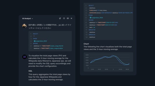 CodatumのAI Assistant機能を活用することで、SQLクエリやチャートの作成を強力に支援します。まるでデータ分析のスペシャリストが隣にいるかのような感覚で、直感的かつ効率的にデータ探索を進めることができます。
