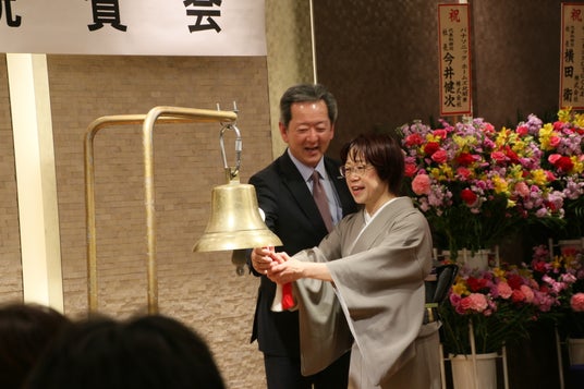 祝賀会では、創業から上場までの歩みをまとめたダイジェスト動画の上映に続き、ベルセレモニーを実施しました。