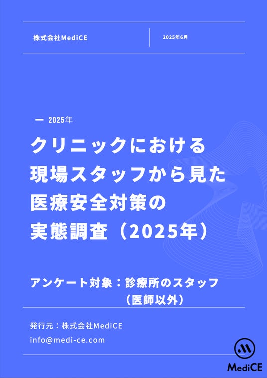 株式会社MediCE(所在地:神奈川県横浜市、代表取締役:稲岡稼頭斉)は、全国の診療所で働く医師以外のスタッフ(看護師・医療事務・技師等)を対象に、医療安全に関するアンケート調査を実施し、230名からの有効回答を得ました。 その結果、法令により義務付けられている「医療安全指針」や「年2回の安全講習」が、多くの職場でスタッフに共有されていない実態が明らかになりました。 「講習を受けていない・記憶にない」と回答した職員は約6割、「医療安全指針を見たことがない」と答えた職員は約7割に上ります。これは、制度が整備されていながら周知が不十分なのではなく、管理者による制度整備と、実際に現場で機能させるための運用体制が十分に構築されていないことを意味します。 まずは管理者が法令に基づいた体制を整え、その内容を現場に確実に伝え、運用していくことが急務です。制度の未整備と、運用不全による文化の未醸成。この二重の課題が、医療安全の実効性を大きく損なっていることが、今回の調査から明らかになりました。