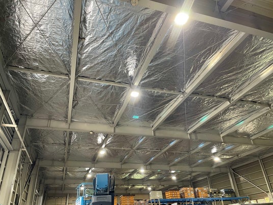 工場の天井に設置した屋内用遮熱シート「はるクール」