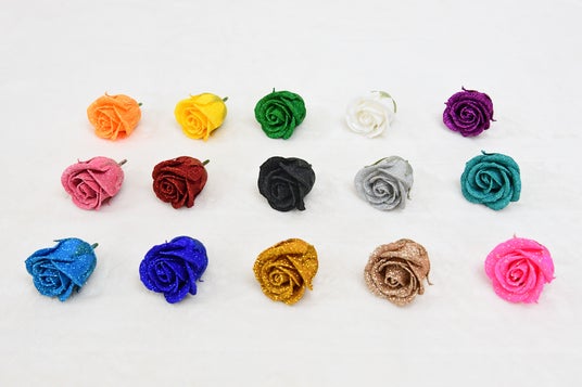 グリッター加工は、一輪ずつ国内工場で手作業で行い、
