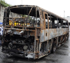 大型乗合バスが高速道路で分岐帯に衝突、横転・炎上し、続く後続車両も衝突。当該ドライバーと乗客1名が死亡し、乗客6名と後続車両のドライバーが重軽傷を負った。