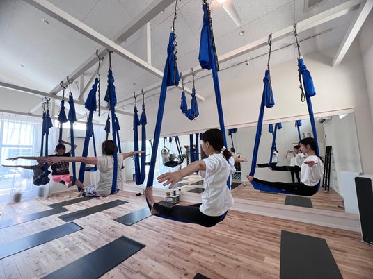 エアリアルヨガが楽しめる長久手市唯一のスタジオ「ヨガラボ長久手」で、春の入会キャンペーンを開催。今だけのお得な特典で、空中ヨガを気軽に始められるチャンスです。