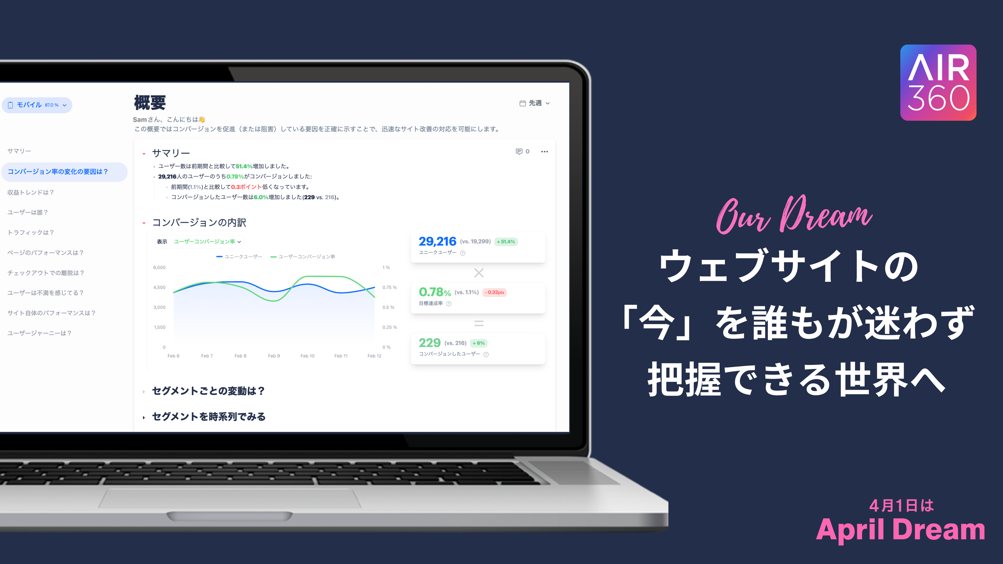当社は、4月1日を夢を発信する日にしようとするApril Dreamに賛同しています。このプレスリリースは「デジタル体験分析ツールAir360」の夢です。