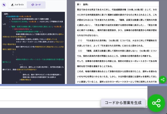 Matchaコードをもとに、法律答案を自動生成できるようになりました。
