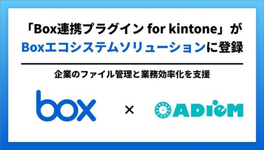 アディエム「Box連携プラグイン for kintone」がBoxエコシステムソリューションに登録~kintoneとBoxのシームレスな連携により、企業のファイル管理と業務効率化を支援~