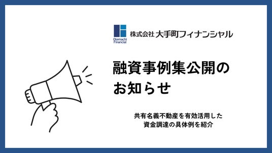株式会社大手町フィナンシャル(本社:東京都千代田区、以下「当社」)は、共有名義不動産を担保にした資金調達の具体例をまとめた「融資事例集」を本日公開しました。本事例集は、不動産共有者の多様な課題やニーズに応えるための具体的な解決策を提案する内容となっています。