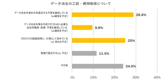 また、9.6%の教育委員会がデータ消去作業を内部で行う工数・設備・予算確保をしていると回答