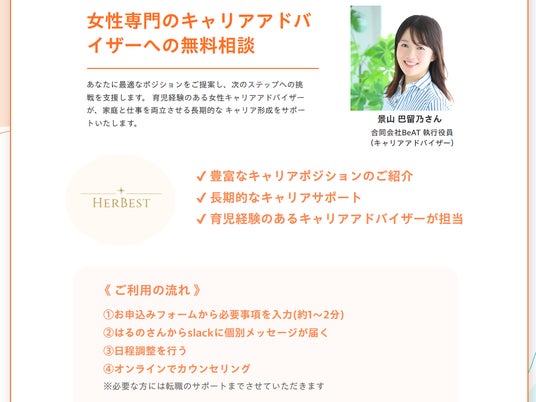プロの女性専門キャリアアドバイザーへの無料相談、AMH検査予約をはじめとする、キャリアプランやライフプランを支える提携先の各種特典や優待サービスを提供しています。これまでは利用までの手順が複雑でしたが、ログインページからワンタップでアクセス・申請できるようになりました。