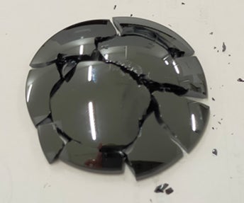 ※弊社開発工程にて割れたカルコゲナイドガラスレンズ