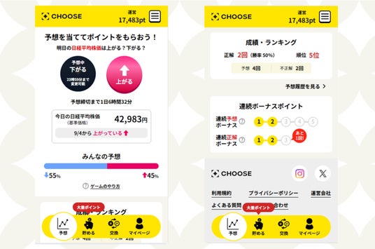 投資予想ポイ活サービス「CHOOSE」が新機能実装でリニューアル。ユーザーが続けたくなる仕組みと広告主メリットを両立