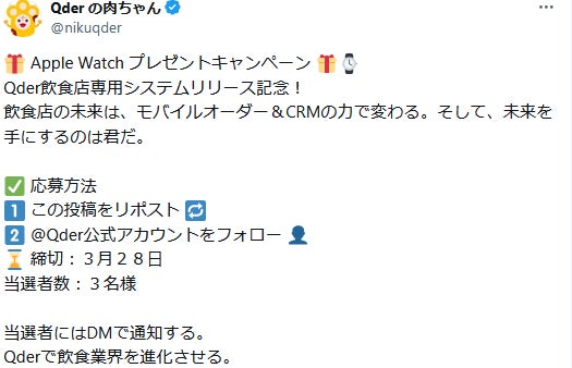 Xにフォロー@nikuqderすると更に watchをプレゼントにぜひ参加してください。