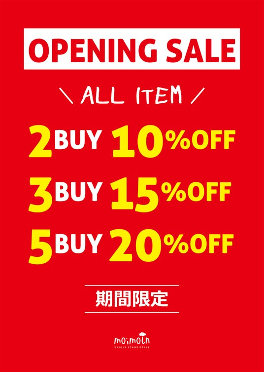 オープン記念として、アウトレット店限定のまとめ買いセールやモイモルンオリジナルノベルティをご用意!
