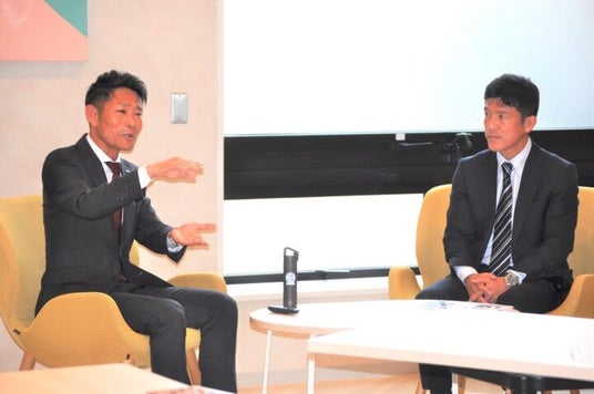 セレモニーでは、山田社長と山本学長による対談も実施されました。山本学長は、「idova」でアルカリイオン水が飲めることに触れ、まずはその効能や浄水との違いについて質問。