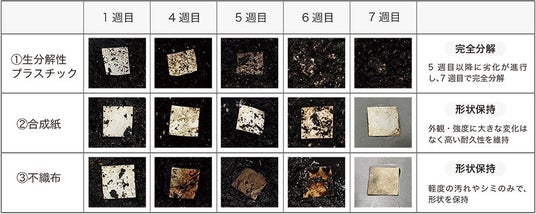 この結果から、生分解性プラスチックは自然条件下で分解が進みやすい一方、合成紙や不織布は高い耐久性を示し、用途に応じた適切な使い分けが有効であることが確認されました。