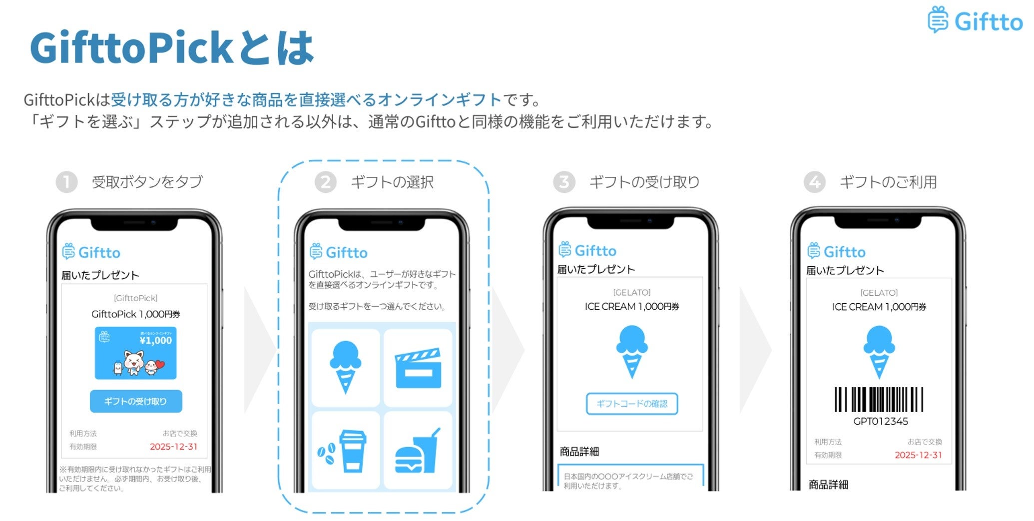 法人向けオンラインギフトサービス「GifttoBiz(ギフっとビズ)」で2025年11月28日より、「GifttoPick」を販売開始いたします。