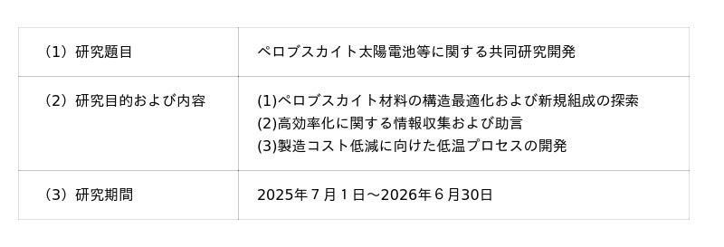 ペロブスカイト太陽電池等に関する共同研究開発を開始