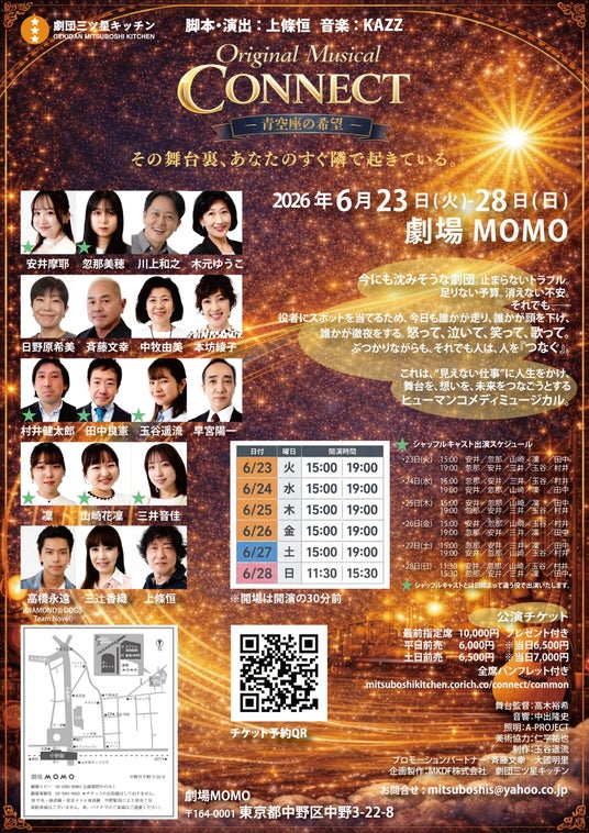 舞台『CONNECT』は、舞台の表には見えない“支える人々”にスポットを当てた、ヒューマンコメディミュージカルです。