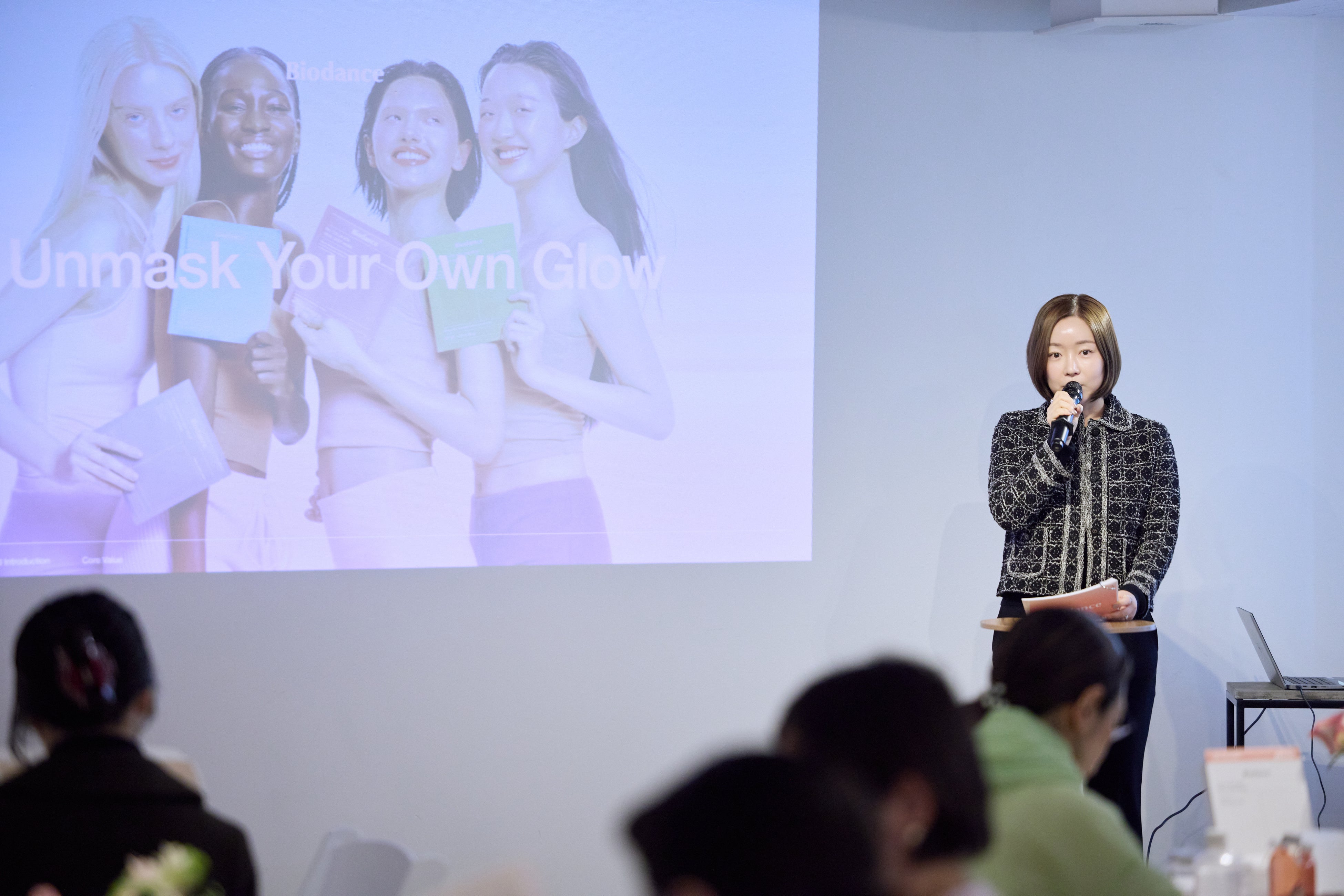 メディア懇談会パートでは、Biodanceのファウンダー、キム・ミファより、Biodanceは、”肌が本来の効能に基づいて健康になることを目指しながら、本来の輝き”Glow”を見つける”というブランド理念についてご紹介いたしました。