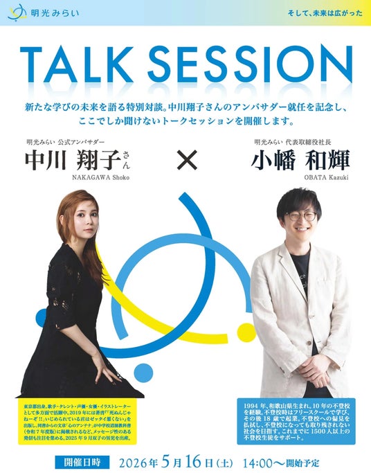 株式会社明光みらい(本社:東京都新宿区 代表取締役社長:小幡 和輝)は、2026年4月、高田馬場に「明光義塾高等学院」を開校いたしました。本校の校長には、高野 礼央奈(25歳)が就任します。教育業界において異例の若さとなる日本最年少※25歳の校長誕生となります。(※自社調べ:2026年4月時点)また、本校の公式アンバサダーにはタレントの中川翔子さんが就任。記念イベントの開催も決定いたしました。