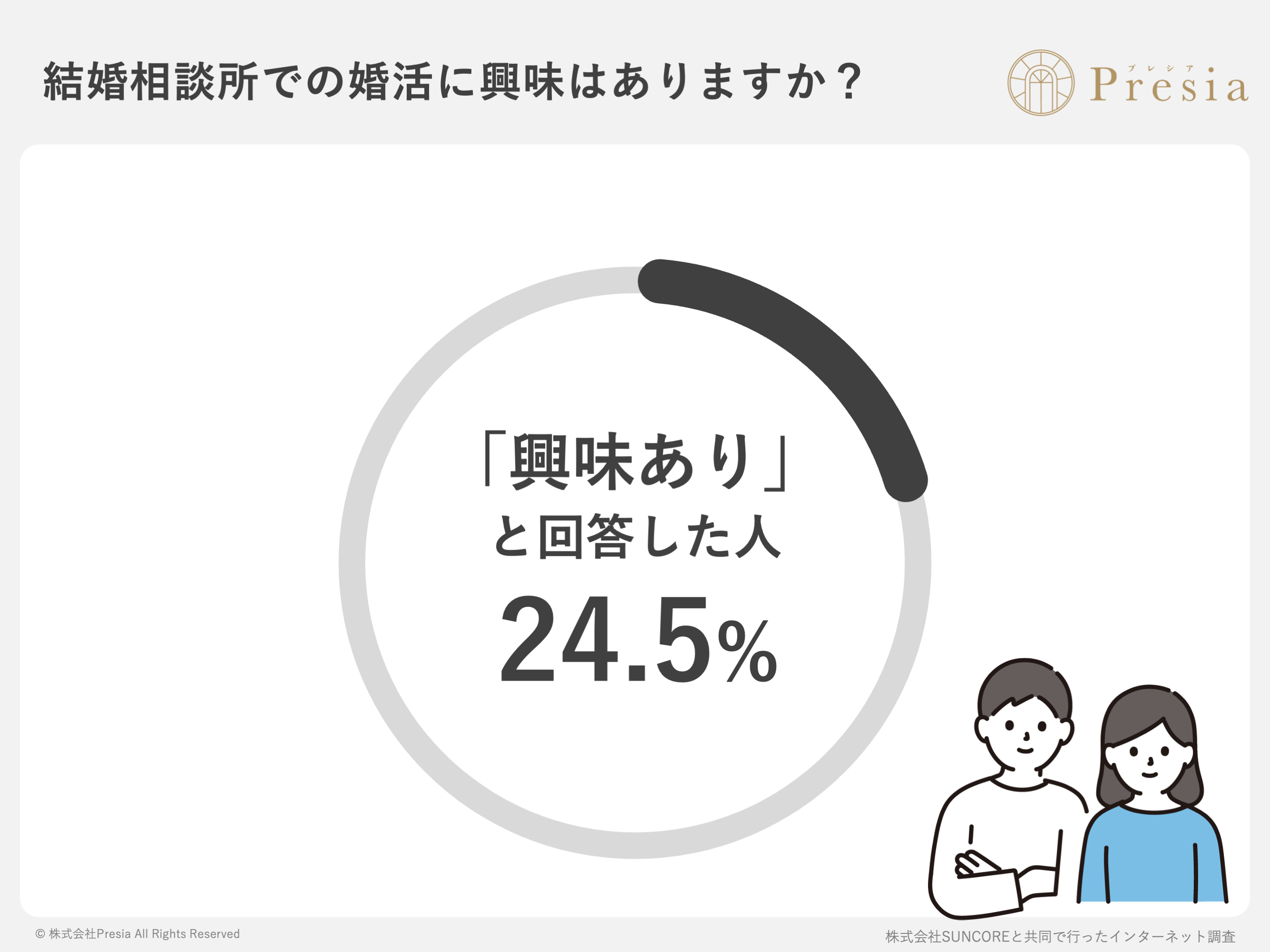 - 一方で、利用未経験者の24.5%は結婚相談所での婚活に「興味あり」と回答