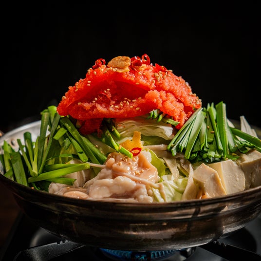 国産牛小腸を使用したもつは噛まずに溶ける程の抜群の鮮度を保つ。研究に研究を重ねた秘伝の自家製スープは深く濃厚で甘みが特徴的。コクがあるのにしつこくない味わいで様々な年齢層のお客様からご支持いただいております。博多ならではの明太もつ鍋に炭火で作り上げる塩レモンもつ鍋も大注目。