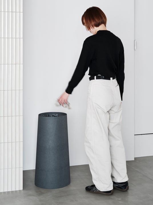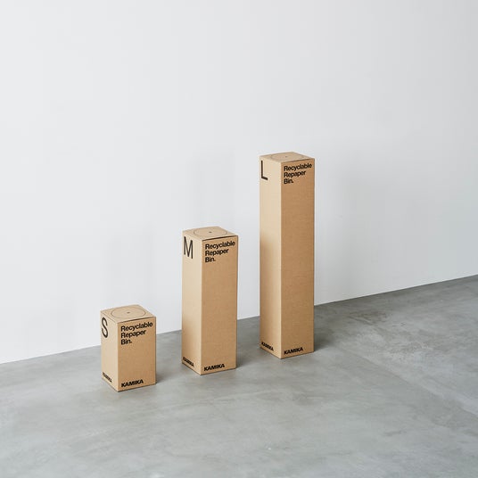 製造工程の廃材から生まれた紙製ゴミ箱「KAMIKA BIN」 Photo by Ryoukan Abe