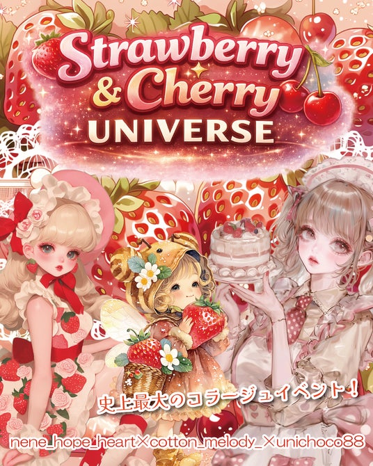 個人クリエイターブランド「nene_hope_heart」「cotton_melody_」「unichoco88」は、3ブランド合同による体験型コラージュイベント「Strawberry & Cherry Universe」を、2026年5月中旬より開催いたします。
