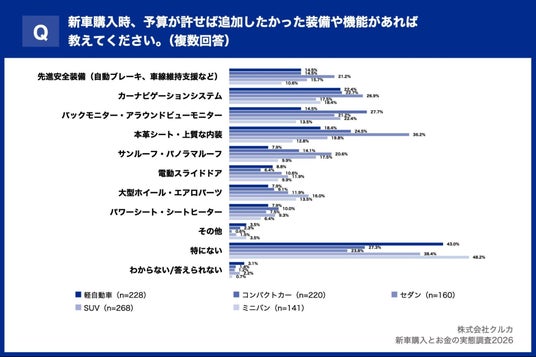 Q.新車購入時、予算が許せば追加したかった装備や機能があれば教えてください。(複数回答)