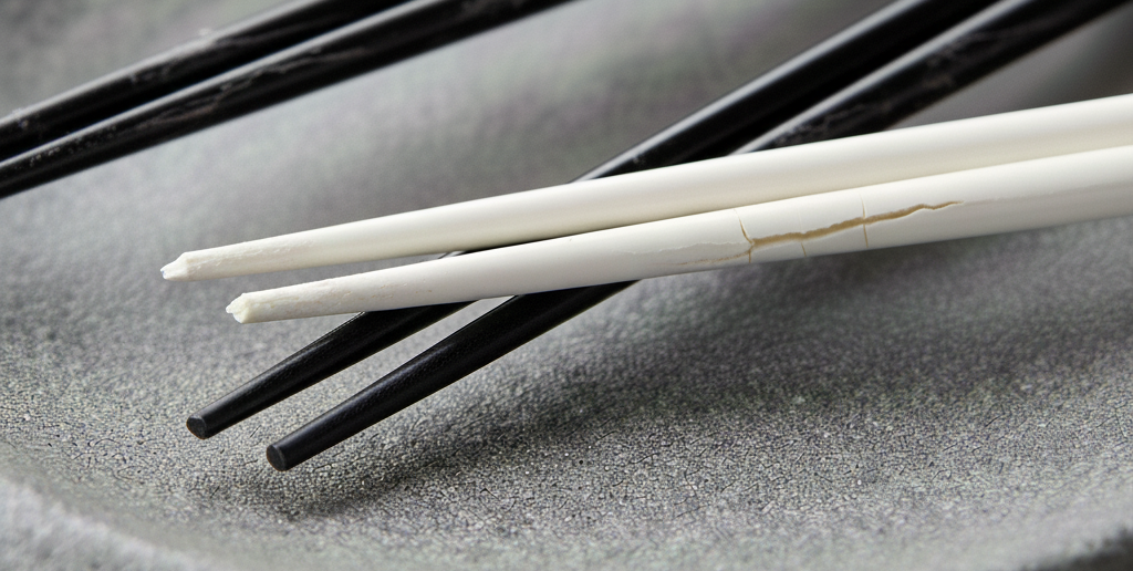 しかし、木製やプラスチック製の箸では、箸先を細く仕上げると「欠け」や「割れ」が起こりやすくなります。