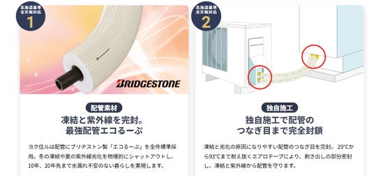 最高クラスの耐熱・耐久性を誇る配管「エコるーぷ」を全工事に採用。さらに、日本トップクラスの快晴日数を誇る埼玉の強烈な紫外線から配管を守るため、耐候性に優れた特殊素材「エアロテープ」で鉄壁のガードを施します。