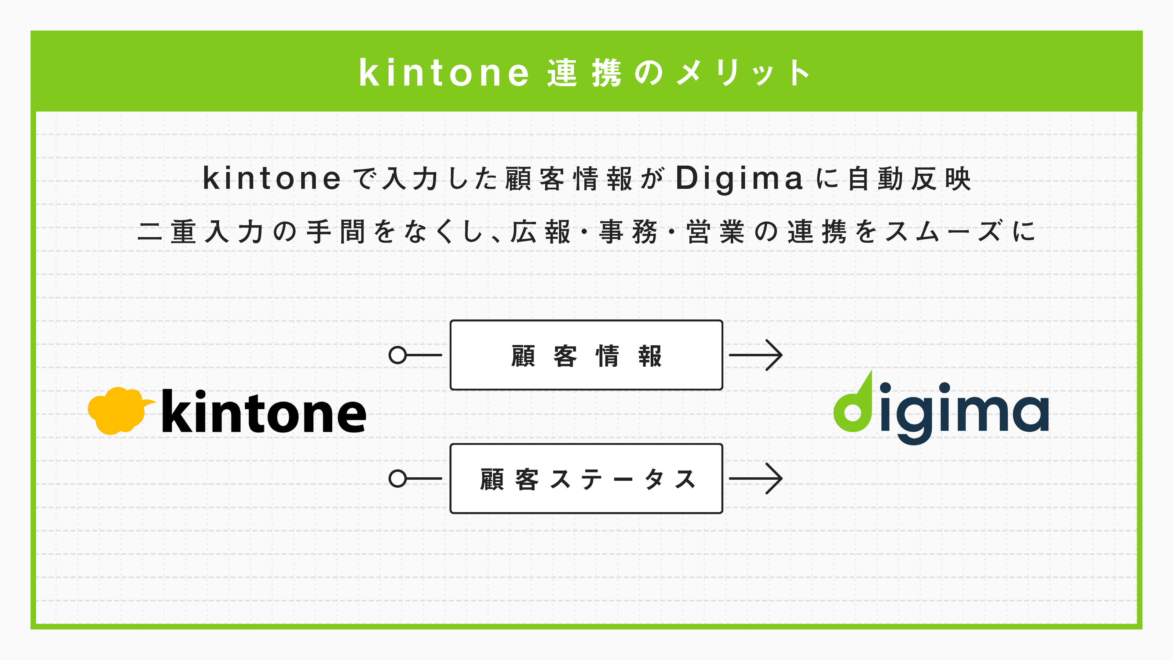 こうした状況を踏まえ、コンベックスは「kintone × Digima連携機能」を開発しました。