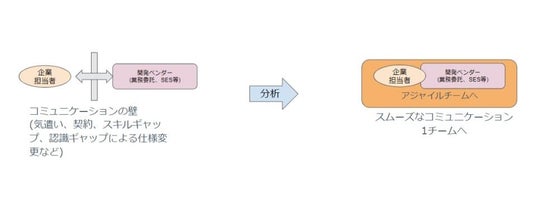 ビジネス担当者と開発エンジニアのコミュニケーションは、開発効率を上げるアジャイル開発の核と言っても良いものです。しかし、日本においては、開発のアウトソースが一般的であることから、スキルギャップや気遣いの壁などで、開発をアウトソースしない海外よりも難易度があがる傾向があり、この壁は納期遅延や生産性低下に直結します。