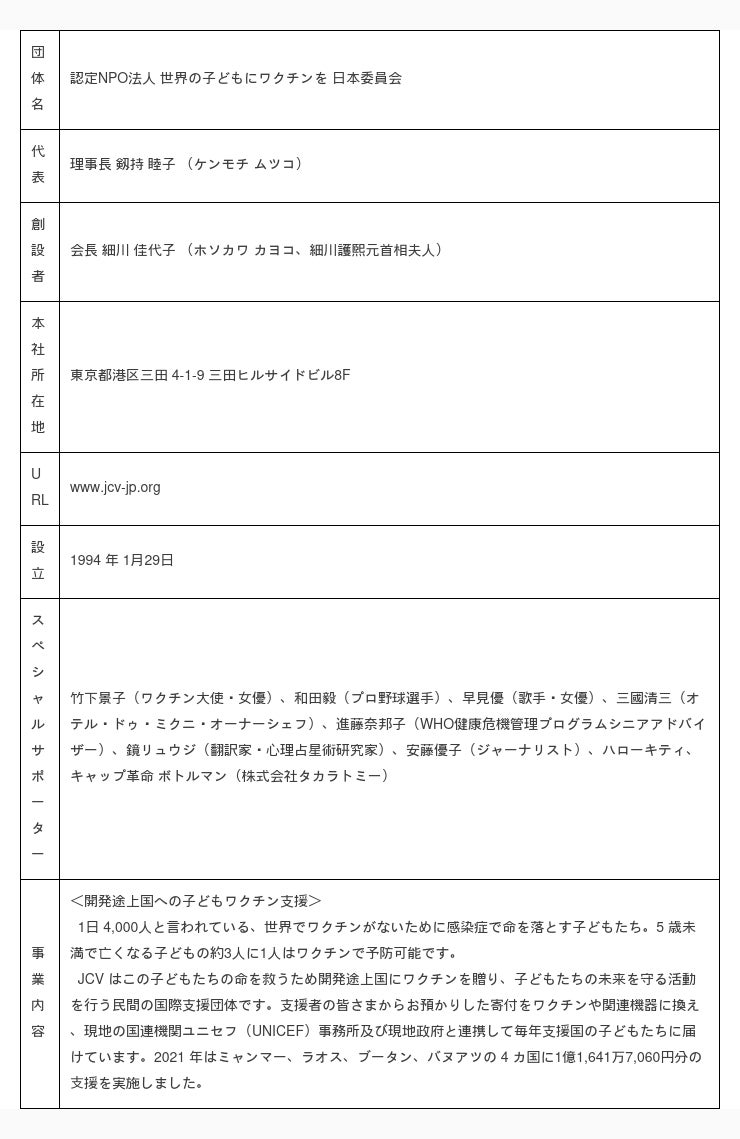 福岡ソフトバンクホークスの和田毅選手が2005年から行なっている、開発途上国の子どもたちに感染症のワクチンを支援する活動。2021年もスペシャルサポーターとして活躍する「認定NPO法人 世界の子どもにワクチンを 日本委員会」(以下:JCV、本社:東京都港区)を通しミャンマー、ラオス、ブータン、バヌアツの4カ国に40,300本分(金額にして2,755,000円)のワクチンを寄贈しました。