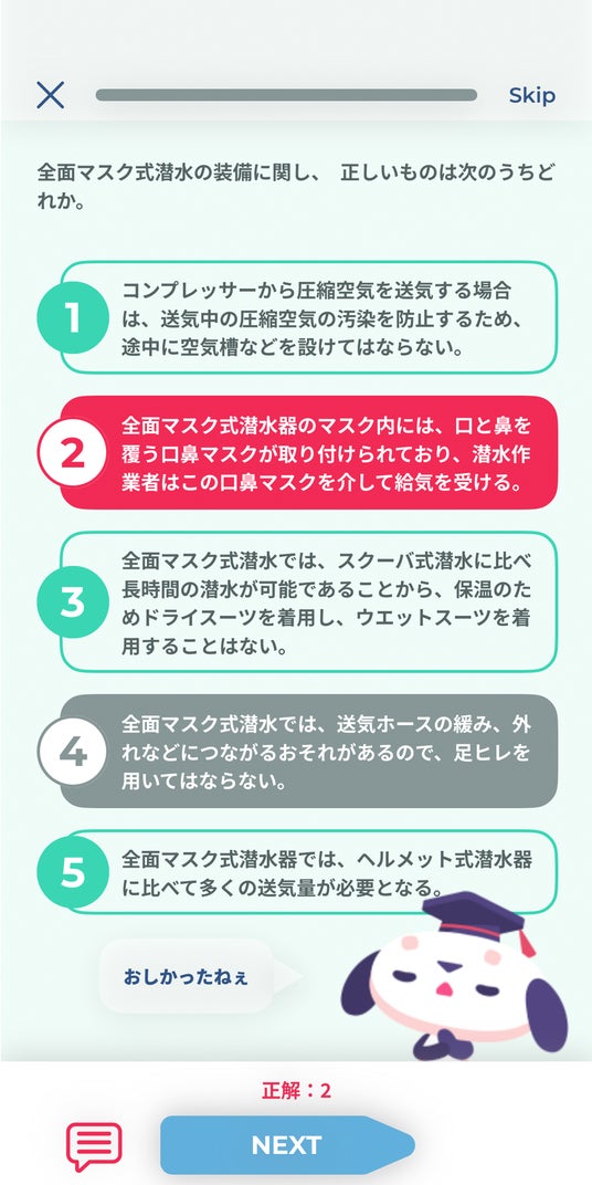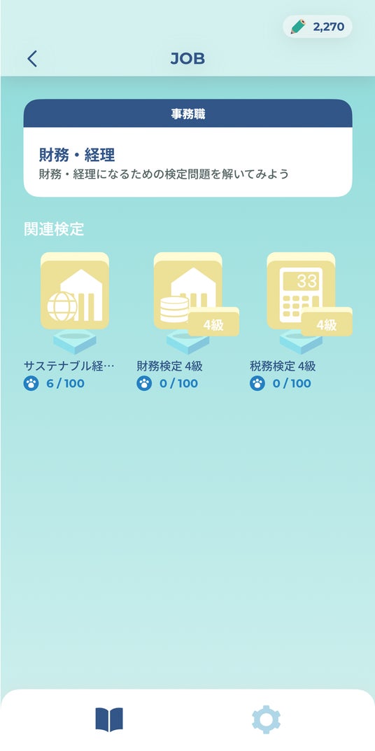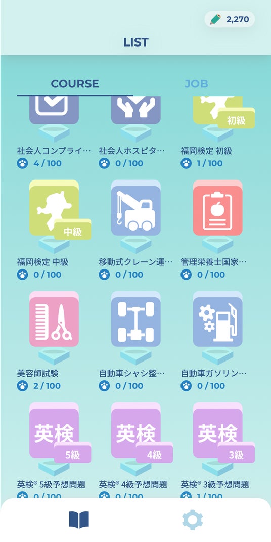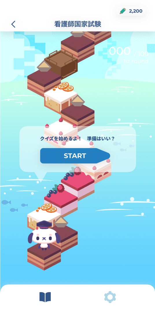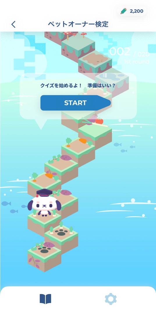 アプリのナビゲート役として、犬のキャラクター「カル」が登場します。カルの応援を励みに、塔の頂上を目指して検定の進行に合わせて塔を登っていくゲーム性を取り入れ、学習が継続できる仕組みになっています。今後のアップデートでは、スコアをランキングで競う機能や、カルの成長を楽しむゲーミフィケーション要素を追加予定です。